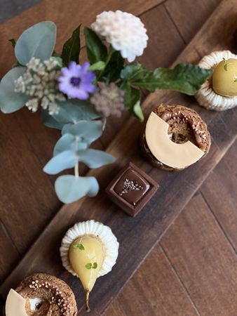 Beneath its buckwheat choux pastry lies a sobacha-infused cream, buckwheat praliné, and a soft caramel.